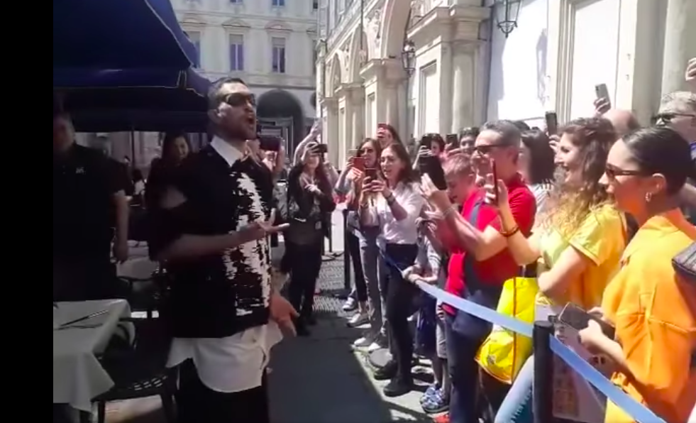 Se doveva arrivare l'Eurovision per portare, o meglio riportare una ventata di normalità in città, e a dire il vero anche fuori, ben venga. Il centro di Torino è galvanizzato dalle incursioni degli artisti che si prestano a selfie ed estemporanee esibizioni, l'Eurovillage del Valentino è un bel regalo con i suoi concerti gratuiti e la situazione un po alla Woodstock “de noantri” ( siamo pur sempre torinesi, “esageruma nen”...), il sindaco Lo Russo, serio e solitamente ingessato com'è si è trovato davanti Mahmood, dato tra i superfavoriti con Blanco, e lo ha ricevuto a Palazzo Civico. L'artista, dal look più sobrio del solito ha rinunciato all'abito lungo del red carpet presentandosi in mocassini, calzini e gonna longuette nera. Poco prima il cantante era stato avvistato, riconosciuto e “selfato”in piazza San Carlo dove non ha lesinato dei Brividi in coro con i fans.